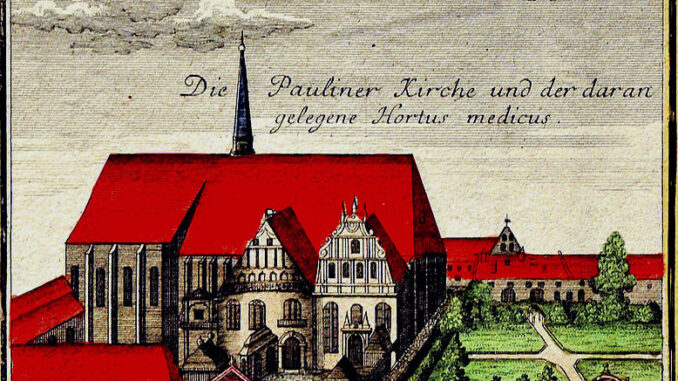 Die Universitätskirche, die den Zweiten Weltkrieg überdauert hatte, wurde 1968 auf Betreiben der Universität und nach Beschluss der SED-geführten Stadtverwaltung gesprengt. An ihrer Stelle steht heute das Paulinum – Aula und Universitätskirche St. Pauli, ein Neubau, der in seiner Architektur Elemente der ehemaligen Kirche aufgreift.